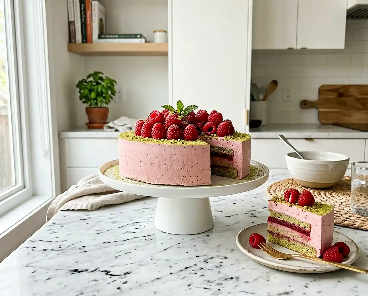 Résultat ? Un dessert élégant, équilibré entre le fruité acidulé de la framboise et le côté doux et légèrement sucré de la pistache. Parfait pour un dîner en famille, un anniversaire ou juste pour s’offrir un weekend pâtisserie bien mérité.