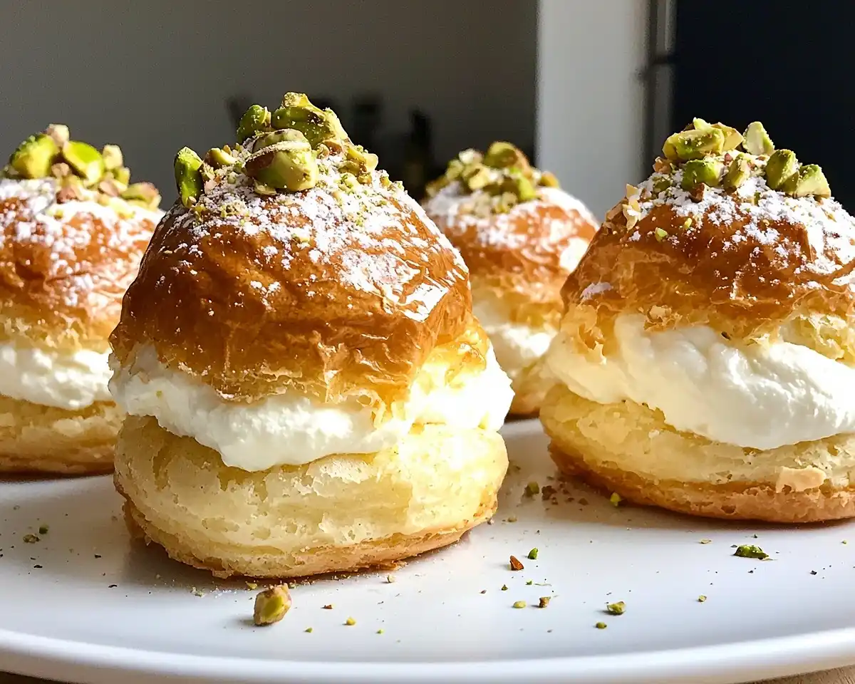 Profiteroles Salées Craquelin Parmesan avec mousse de mortadelle et éclats de pistache : croustillant, fondant et super gourmand !