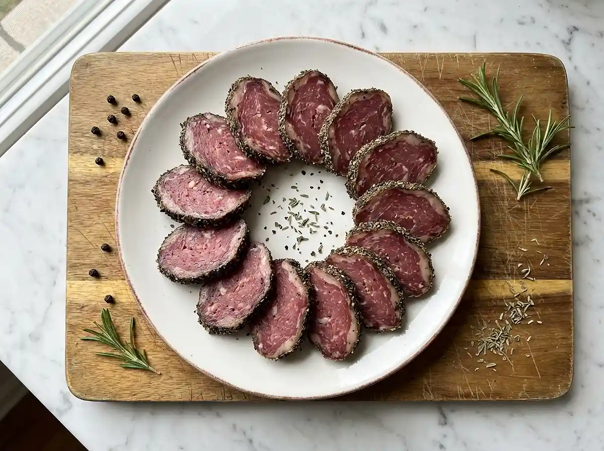 Le poivre de Kampot est la vraie star de cette recette. Ce poivre cambodgien, doux et floral, transforme complètement le saucisson magret de canard recette classique en quelque chose d’exceptionnel.
